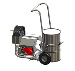 Direct from-drum motorized sprayer for bitumen emulsion.